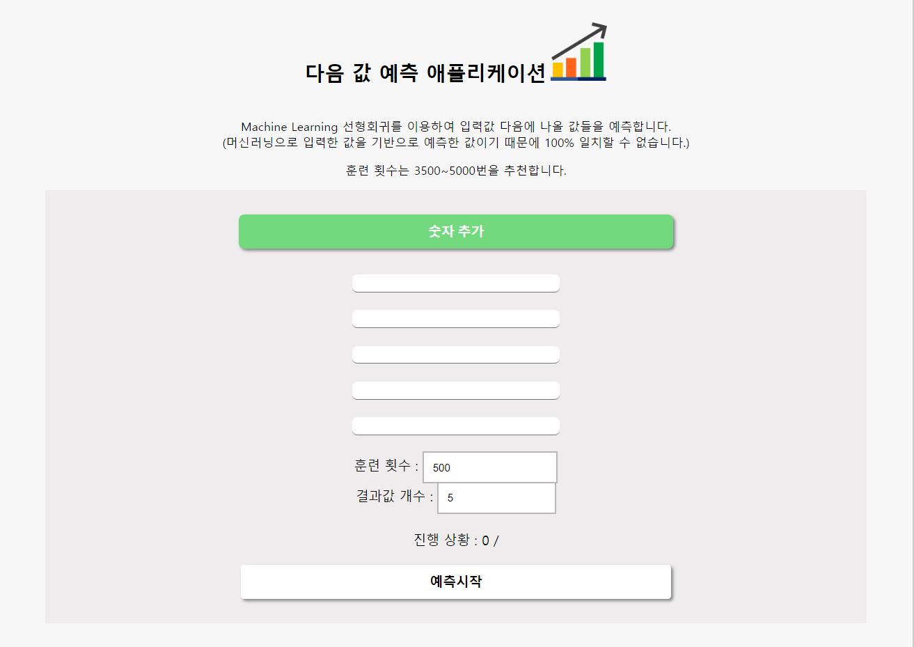 본 다음 값 예측 애플리케이션의 주소입니다. 한번 테스트해 보실 분들은 들어가서 테스트해보세요